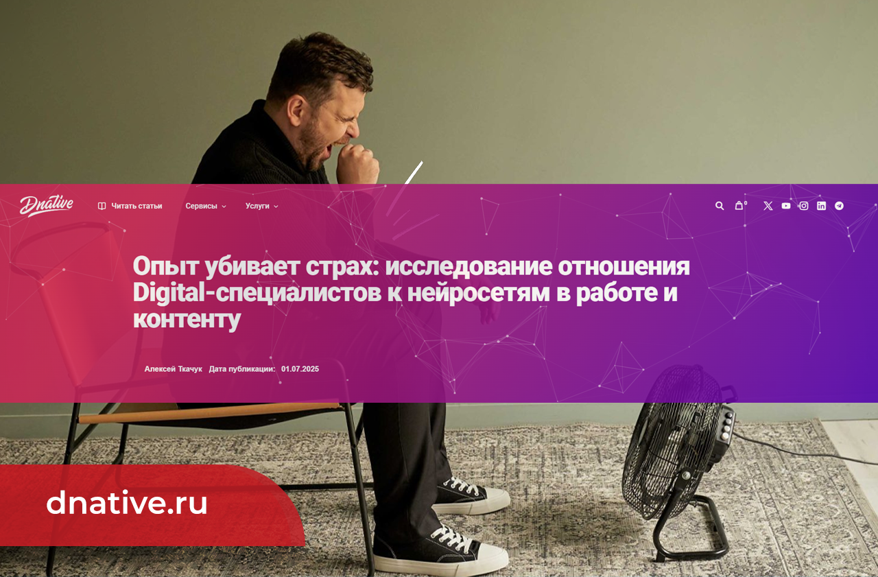 Начнем с невероятно актуальной статьи «Опыт убивает страх: исследование отношения Digital-специалистов к нейросетям в работе и контенту».